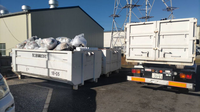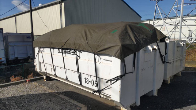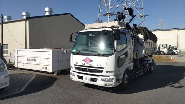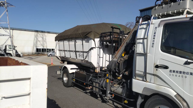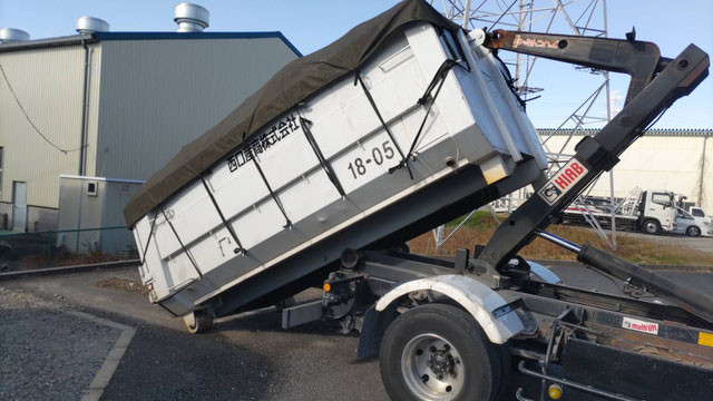 アームロール車による、産廃コンテナの交換作業